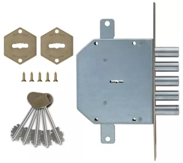 Замок врезной двухсистемный ЗВ 25.14 Т (прав) с тягами (без накл), 5+1 кл (длин. кл. 54мм) /123:454/